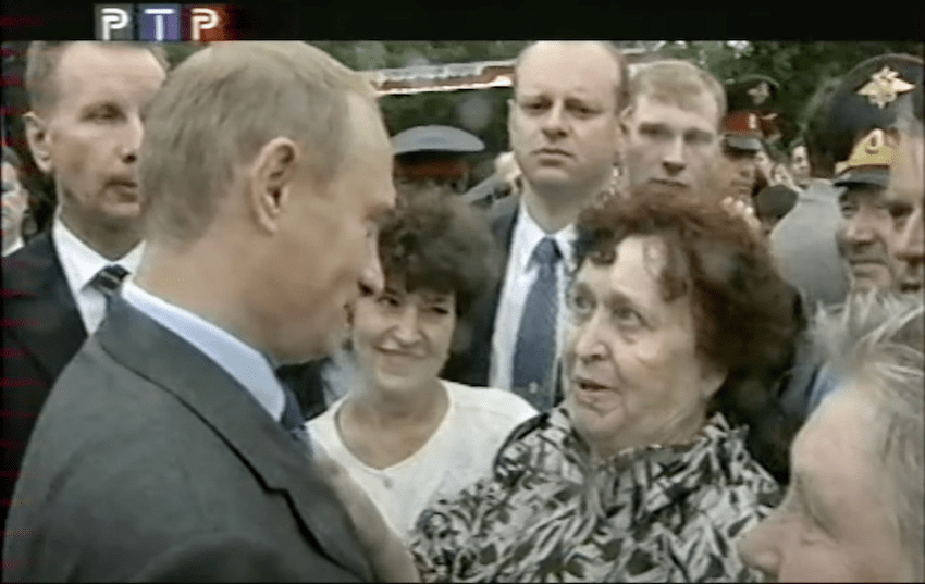 Putin. The Leap Year [Putin. Visokosny god] was made by Vitaly Mansky with footage from the first year of Putin’s presidency (starting from his first days in the Kremlin when he became the Acting President until May 7th, 2001, the 1st anniversary of his official presidency). It includes some material from Unknown Putin. Peace and War [Neizvestny Putin. Mir I Voina] (2000). Mansky comments on some of the footage. In 2018, Mansky made another film, Putin’s Witnesses [Svideteli Putina] (2018), where he also uses video from the two earlier films.